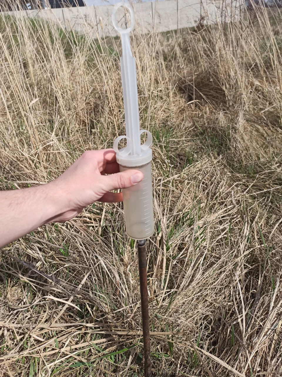 Měření probíhá rychle a šetrně. Na místě provedeme bodové měření pomocí přístroje s okamžitým vyhodnocením. Do půdy zatlučeme mělkou sondu, která umožní odebrat vzorek půdního vzduchu – bez kopání nebo bagrování.